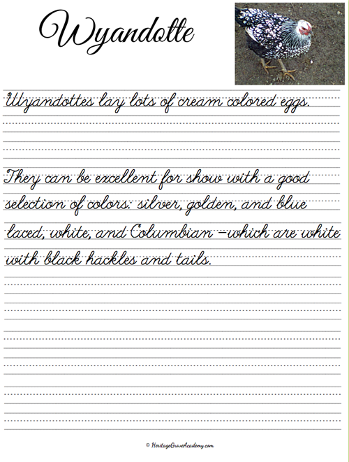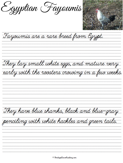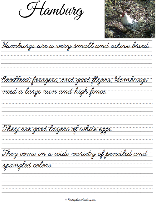 Heritage Breed Chicken Cursive Handwriting Copywork