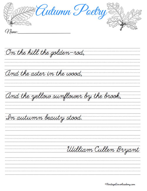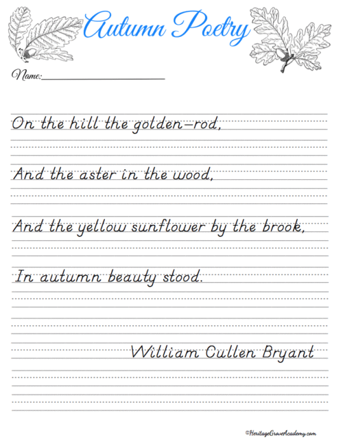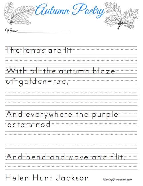 Autumn Art, Copywork, and Handwriting Poetry Book