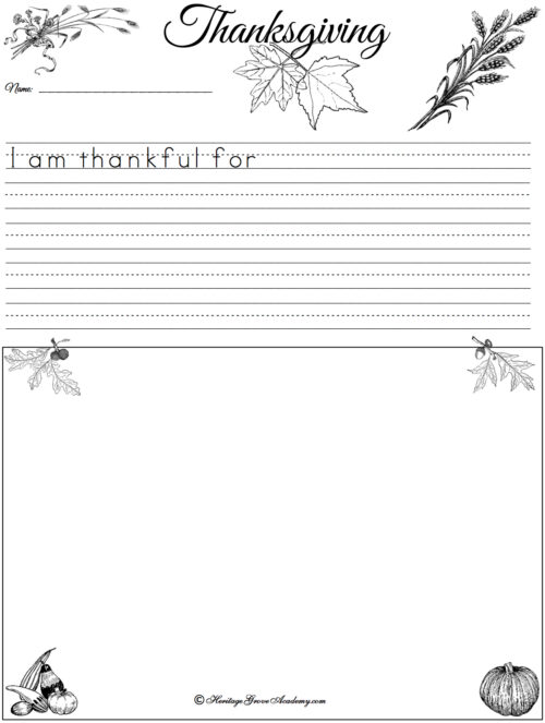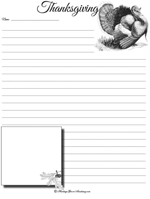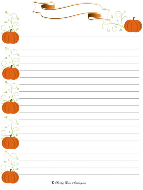 Included are beautiful lined writing pages adorned with turkeys, pumpkins, vines, leaves, and harvest scenes that kids love to write on.
