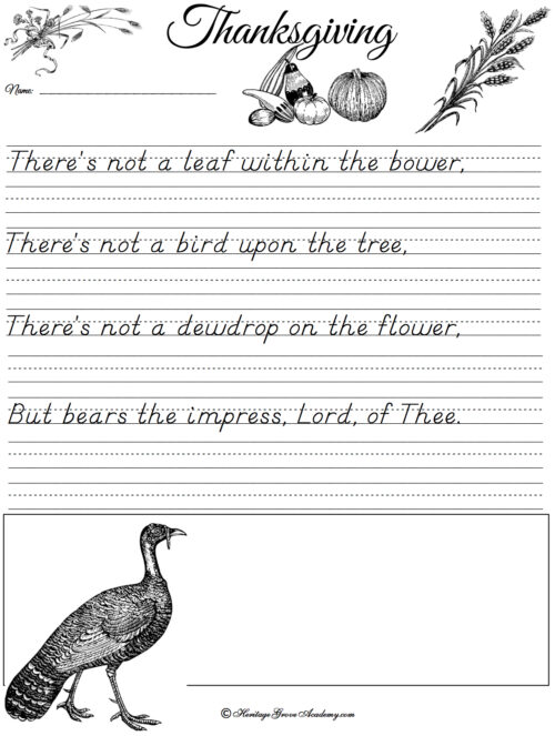 Fall – Thanksgiving Copywork Poetry and Writing Pages