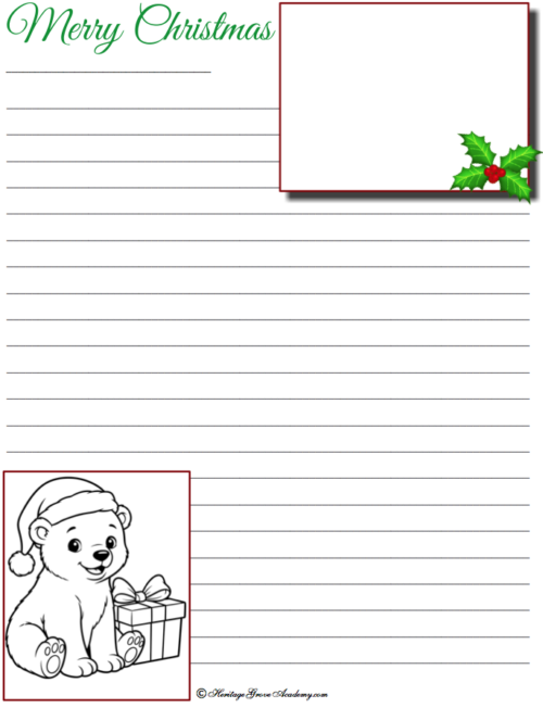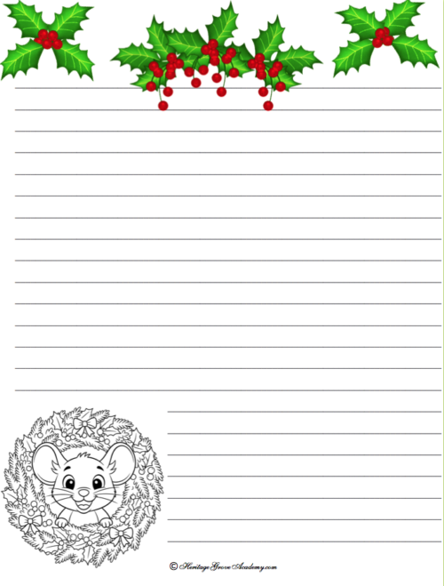 When I’m getting writing lessons together for the kids I love to have a variety of different pages to print. We use a variety of different pages for writing assignments – and with a few different children, different writing stages and different kinds of assignments – it’s really nice to have some choices so that everybody has a nice selection. Holiday writing pages are always enjoyable – even if we don’t use them specifically for writing during or about the holidays, except for beautiful and fun stationary.
