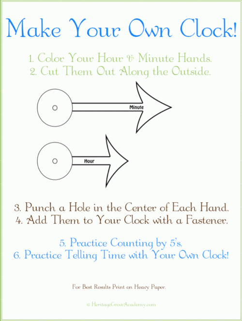 After scanning through my printable clock pages, I came up disappointed because none of them had the 5’s on them, which is what I was really looking at with the twins. So, this is how these Make A Clock pages were born.