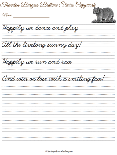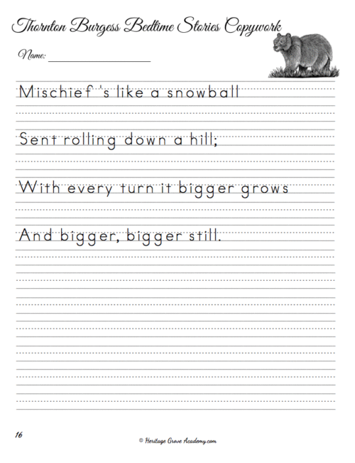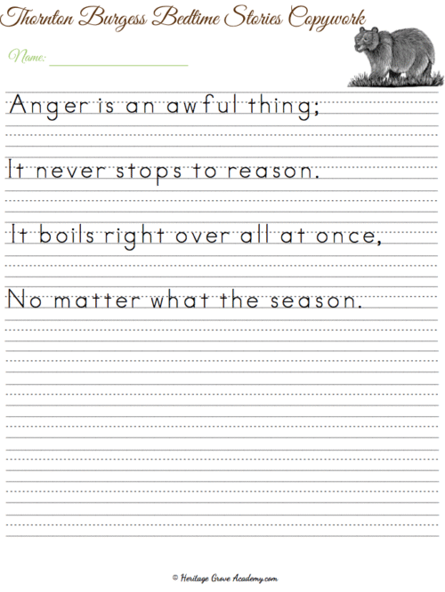 These handwriting pages can be easily used as a supplement to a nature unit study to add writing, poetry, penmanship and character studies.